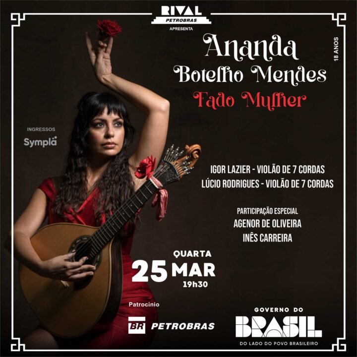 Conhecida como “a carioca do fado”, a cantora Ananda Botelho Mendes apresenta o show “Fado mulher”, que a consolidou como uma das mais expressivas artistas brasileiras especializadas na canção de além-mar. No roteiro, clássicos da música portuguesa que marcaram época nas vozes de Amália Rodrigues e Carlos do Carmo.