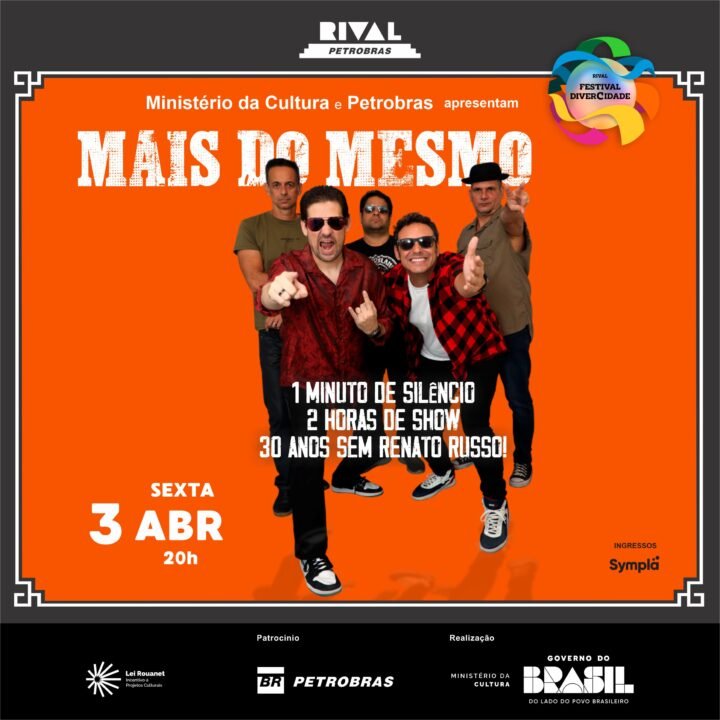 Vai começar a turnê da Mais do Mesmo para marcar os 30 anos sem Renato Russo! Prepare-se para uma noite de pura emoção e celebração! Com quase três décadas de carreira, a Mais do Mesmo promete um repertório atravessando toda a obra da Legião Urbana.