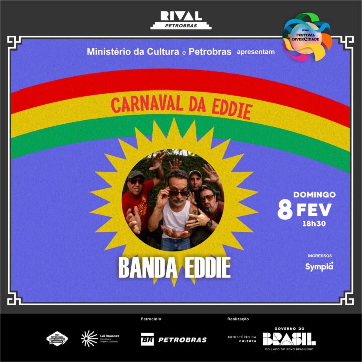 Em fevereiro, tem follia no Teatro Rival Petrobras! No dia 8, a Banda Eddie apresenta o “Carnaval da Eddie”, um show que celebra a essência que acompanha o grupo desde sua origem em Olinda, funcionando como uma síntese viva do percurso musical da banda criadora do Original Olinda Style. No roteiro, estarão os grandes sucessos que marcaram sua trajetória de 35 anos, músicas nascidas da vivência intensa da banda no carnaval recifense e olindense.