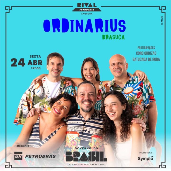 O grupo Ordinarius apresenta o show “Brasuca”, uma homenagem aos operários da canção. É o lançamento do álbum que nasceu do desejo de valorizar o ofício do compositor, artista que, na maior parte das vezes, está longe dos holofotes, mas mantém viva a tradição da canção brasileira. Formado por Antonia Medeiros (voz), Augusto Ordine (voz e violão), Beatriz Coimbra (voz), Fabiano Salek (voz e percussão), Matias Correa (voz) e Maira Martins (voz), o sexteto ainda contará com as participações de Coro Ordizão e Batucada de Roda.